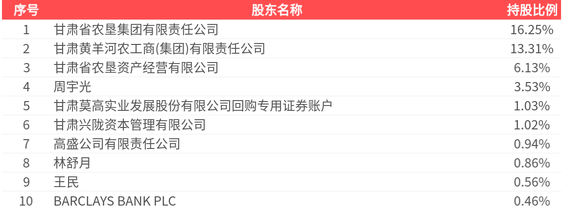 公司股东户数为2.06万户,前十大股东持股数量为1.42亿股,占总股本比例为44.10%,前十大股东持股情况如下: