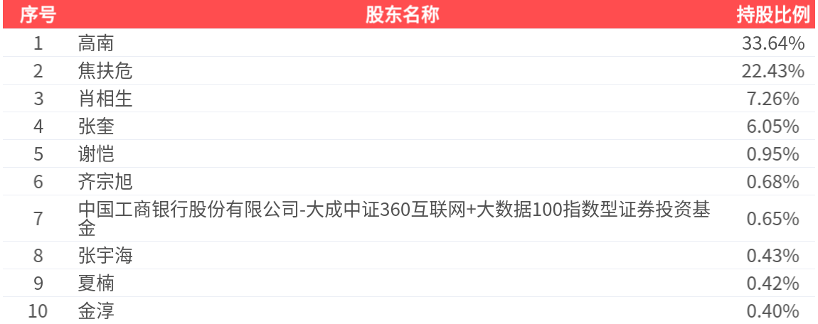 公司股东户数为5186户,前十大股东持股数量为4388.71万股,占总股本比例为72.91%,前十大股东持股情况如下: