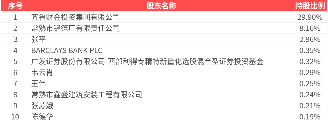 公司股东户数为10.93万户,前十大股东持股数量为4.43亿股,占总股本比例为42.86%,前十大股东持股情况如下: