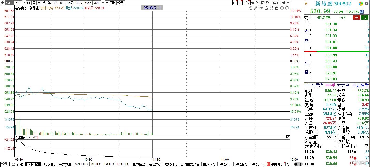 受此影响,新易盛今日股价大跌,截至午间收盘,报530.99元/股,跌幅达12.71%。