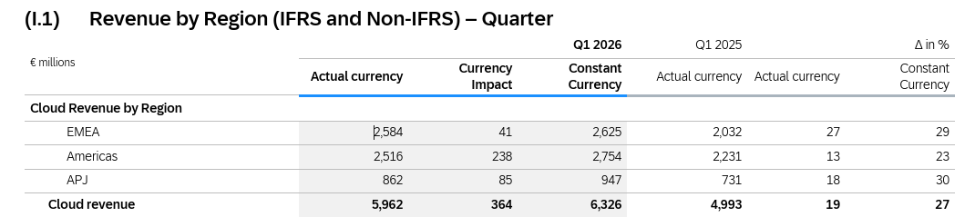 期内,以固定汇率计算,亚太及日本地区的云收入录得9.47亿元,增长30%,业务增速在三大区域排首位;欧洲、中东及非洲地区的云收入录得26.25亿元,同比增长29%;美洲地区的云收入录得27.54亿元,同比增长23%。