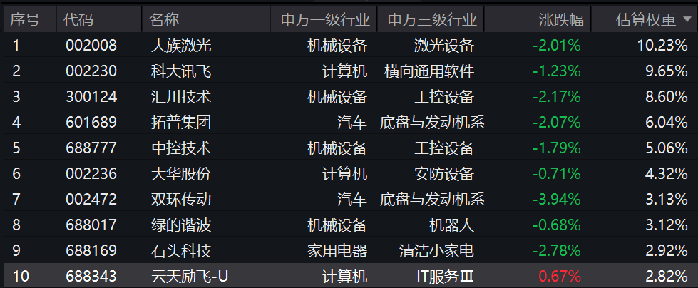【机器人ETF汇添富(159213)标的指数前十大成分股】