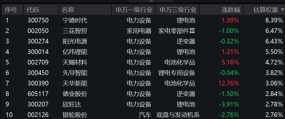 【电池ETF汇添富(159796)标的指数前十大成分股】