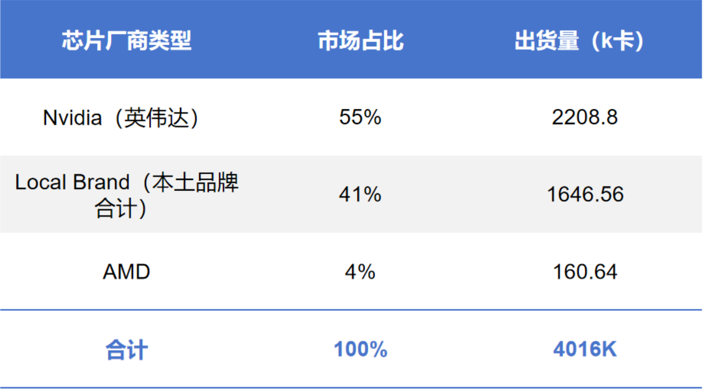 IDC报告显示,2025年中国AI芯片市场总出货量约400万张,其中国产厂商合计出货约165万张,市场占比达41%。这一占比意味着国产AI芯片已从早期的边缘补充角色,逐步进入规模化供货区间,市场结构正由单一依赖向多元供给演变。