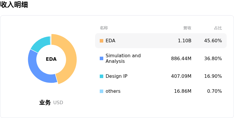 新思科技 (SNPS) 处于软件与信息技术服务行业,最新年度营业收入$7.05B,处于行业48,净利润$1.33B,处于行业39。「公司简介」