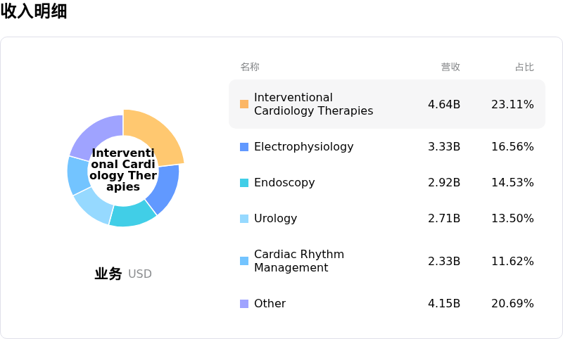 波士顿科学 (BSX) 处于医疗服务与设备行业,最新年度营业收入$20.07B,处于行业11,净利润$2.90B,处于行业6。「公司简介」