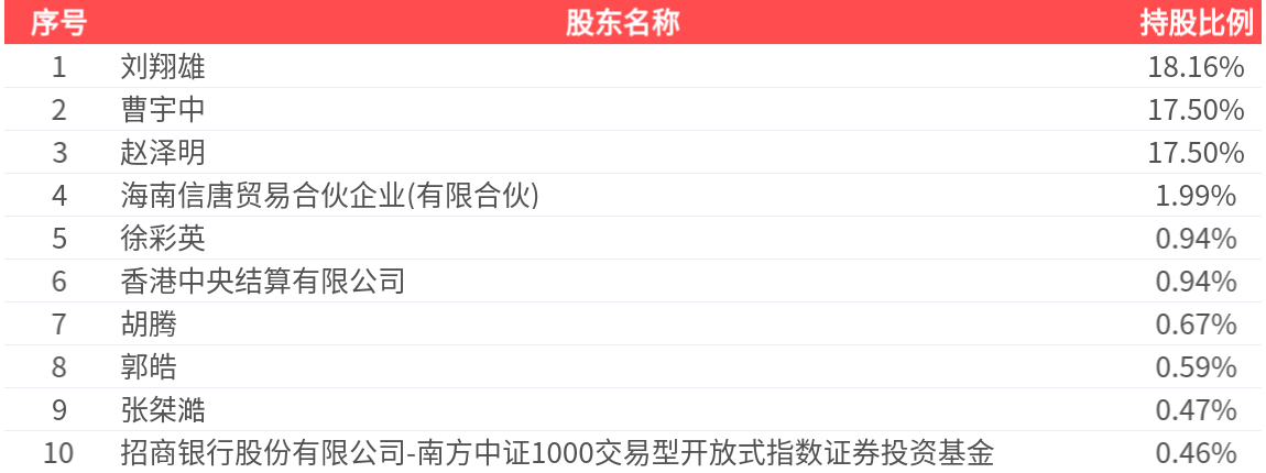 公司股东户数为2.43万户,前十大股东持股数量为1.50亿股,占总股本比例为59.23%,前十大股东持股情况如下: