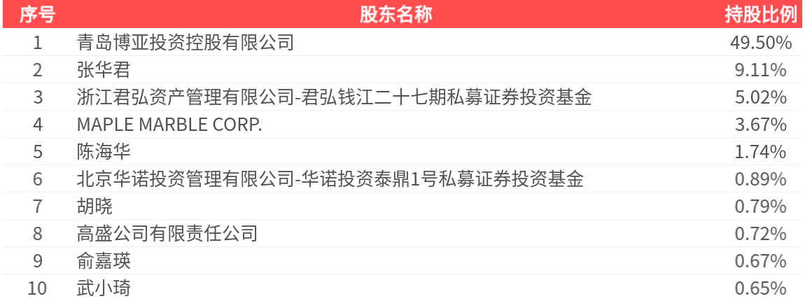 公司股东户数为5751户,前十大股东持股数量为7175.15万股,占总股本比例为72.76%,前十大股东持股情况如下: