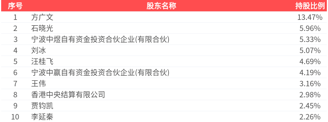 公司股东户数为1.26万户,前十大股东持股数量为4874.18万股,占总股本比例为49.57%,前十大股东持股情况如下: