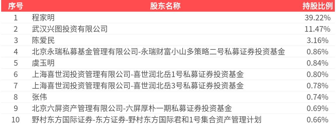 公司股东户数为6054户,前十大股东持股数量为6102.22万股,占总股本比例为59.22%,前十大股东持股情况如下: