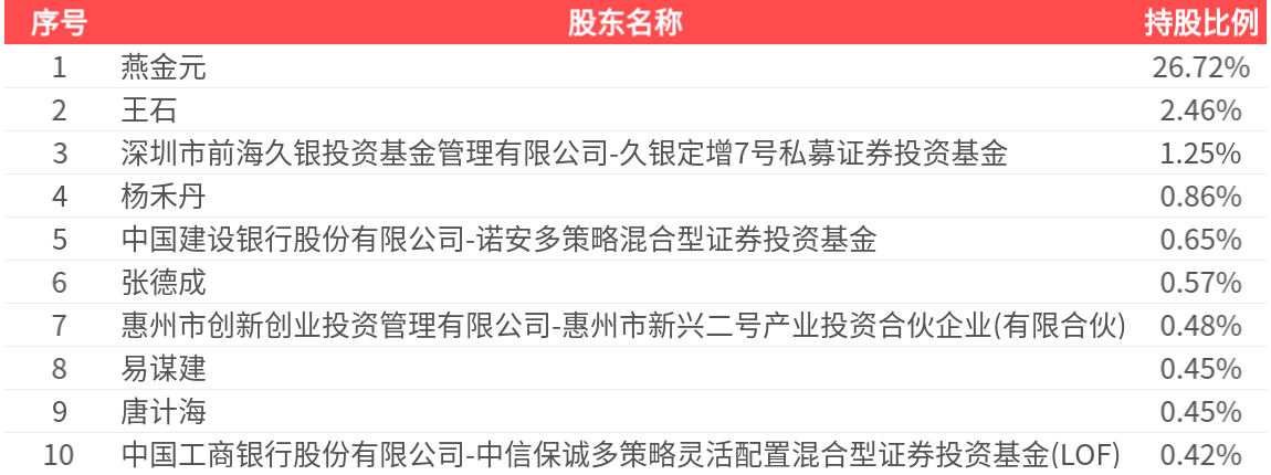 公司股东户数为1.98万户,前十大股东持股数量为9077.67万股,占总股本比例为34.31%,前十大股东持股情况如下: