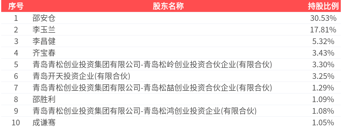 公司股东户数为1.32万户,前十大股东持股数量为1.03亿股,占总股本比例为68.17%,前十大股东持股情况如下:
