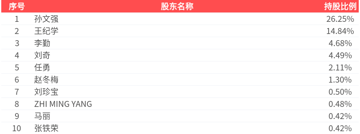 公司股东户数为1.43万户,前十大股东持股数量为5520.80万股,占总股本比例为55.49%,前十大股东持股情况如下: