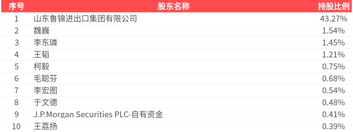 公司股东户数为2.11万户,前十大股东持股数量为2.17亿股,占总股本比例为50.72%,前十大股东持股情况如下: