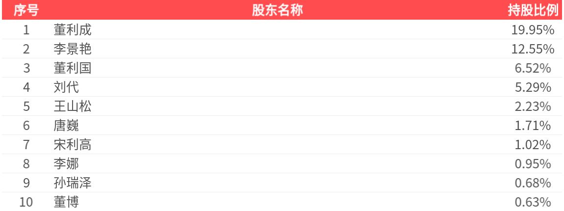 公司股东户数为1.02万户,前十大股东持股数量为6832.13万股,占总股本比例为51.52%,前十大股东持股情况如下: