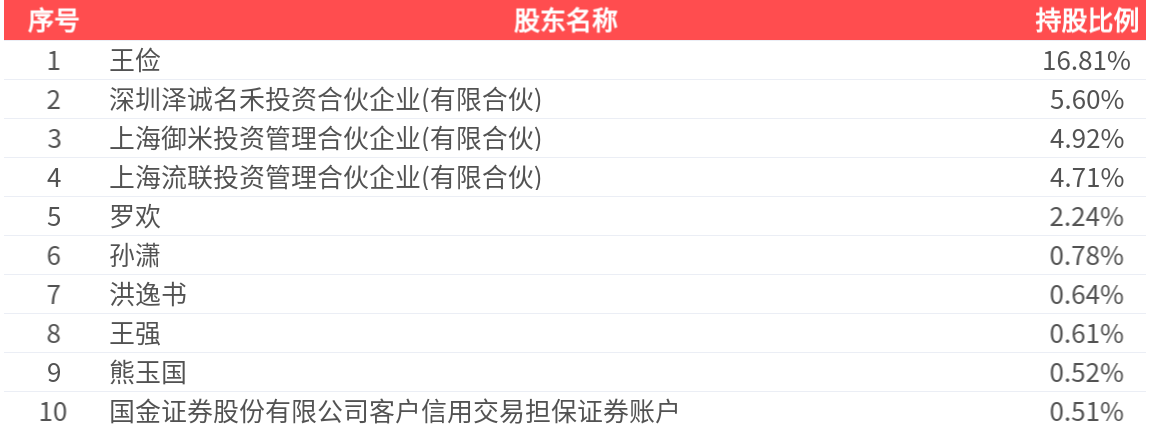 公司股东户数为1.36万户,前十大股东持股数量为1.15亿股,占总股本比例为37.33%,前十大股东持股情况如下:
