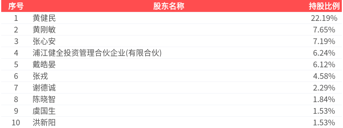 公司股东户数为3719户,前十大股东持股数量为3807.25万股,占总股本比例为61.17%,前十大股东持股情况如下: