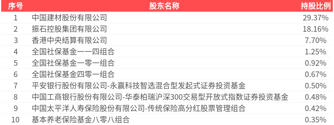 公司股东户数为11.53万户,前十大股东持股数量为23.95亿股,占总股本比例为59.82%,前十大股东持股情况如下: