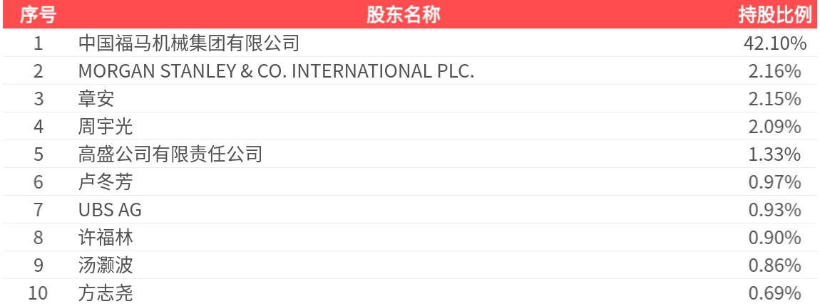 公司股东户数为1.33万户,前十大股东持股数量为1.19亿股,占总股本比例为54.18%,前十大股东持股情况如下: