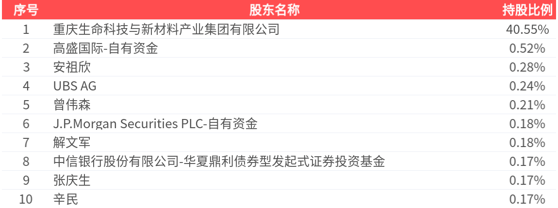 公司股东户数为4.48万户,前十大股东持股数量为1.85亿股,占总股本比例为42.66%,前十大股东持股情况如下: