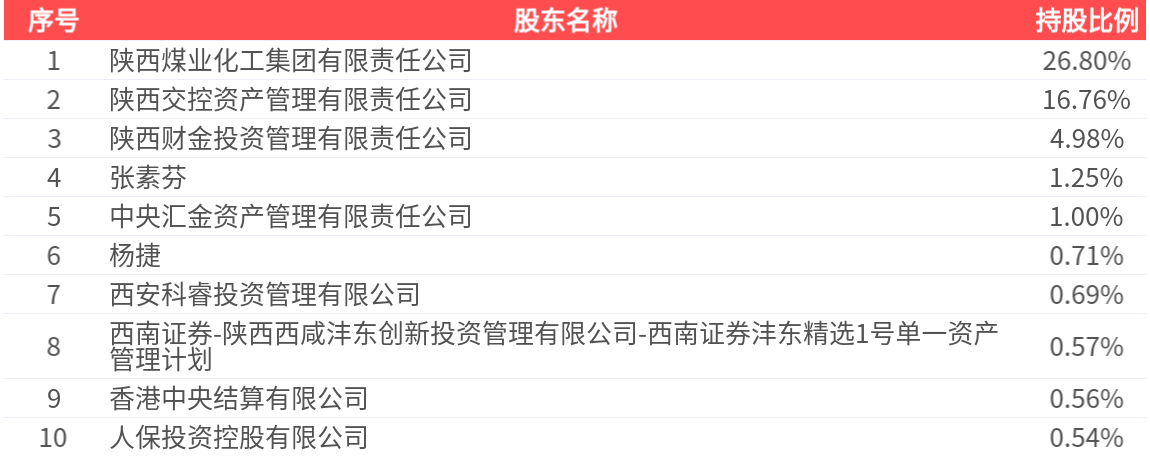 公司股东户数为10.06万户,前十大股东持股数量为27.54亿股,占总股本比例为53.86%,前十大股东持股情况如下: