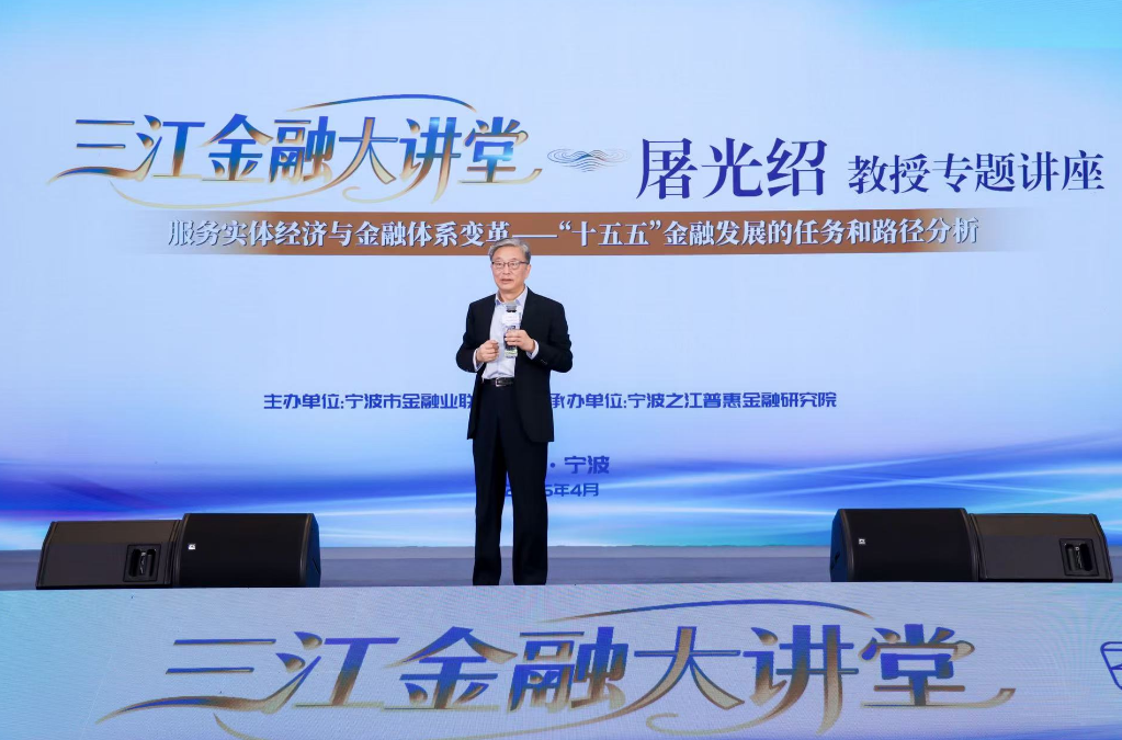 2026年4月24日,承载着厚重金融底蕴与现代产业活力的港城宁波,迎来了一场关于未来金融走向的思想盛宴。由宁波市金融业联合会主办、宁波之江普惠金融研究院承办的“三江金融大讲堂”特别邀请了上海市原常务副市长、上海交通大学上海高级金融学院原理事长屠光绍教授,展开题为《服务实体经济与金融体系变革——“十五五”金融发展的重点任务和路径分析》的专题讲座。