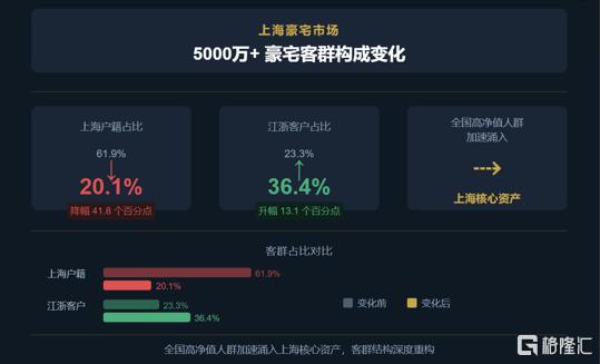 克而瑞对上海14个已披露认筹客户名单的豪宅项目进行了统计分析,在3787组认筹客户中,上海本地客户仅占20.1%,江浙籍客户占36.4%,两者合计仅五成。