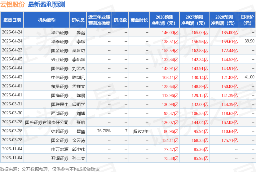 最新盈利预测明细如下: