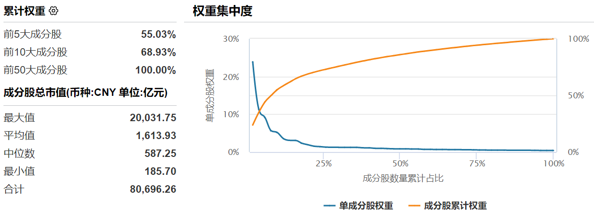图2:创业板50ETF景顺(159682)成分股权重集中度统计
