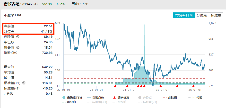此外,养殖ETF汇添富(159172)标的指数估值处于低位,具备较高安全边际。当前养殖ETF汇添富(159172)标的指数市盈率TTM为22.51,处于上市以来的41.49%分位点,比超58%的时间区间便宜。目前畜牧养殖产业整体处于市场预期以及估值低位,具备较好的配置价值。