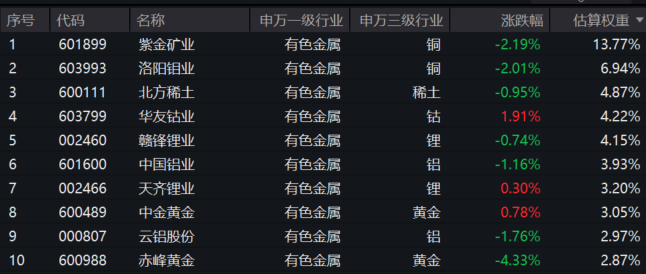 【有色ETF汇添富(159652)标的指数前十大成分股】