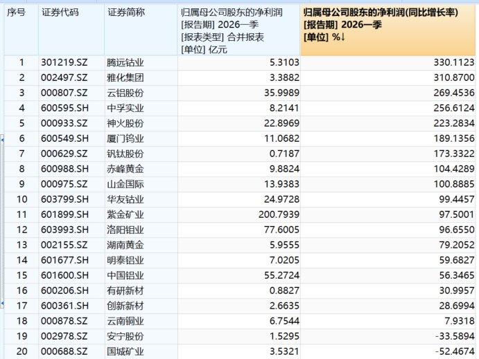 【有色ETF汇添富(159652)标的指数成分股26年Q1业绩】