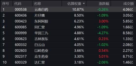 中药ETF汇添富(560080)标的指数权重股涨跌互现:众生药业涨超5%,东阿阿胶涨3%,吉林敖东、以岭药业微涨。下跌方面,华润三九绩后跌超4%,片仔癀、同仁堂跌超1%,云南白药微跌。