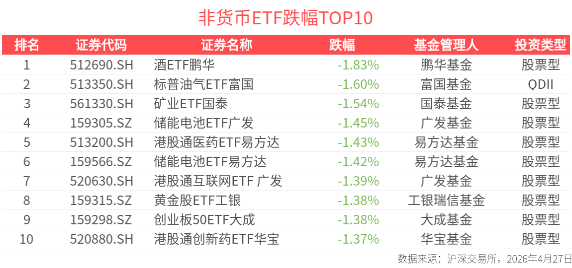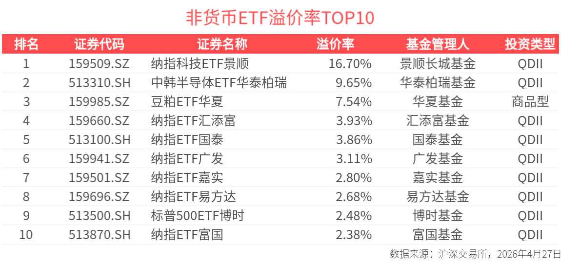 ETF英雄汇:中韩半导体ETF华泰柏瑞(513310.SH)领涨、纳指科技ETF景顺(159509.SZ)溢价明显-20260427
