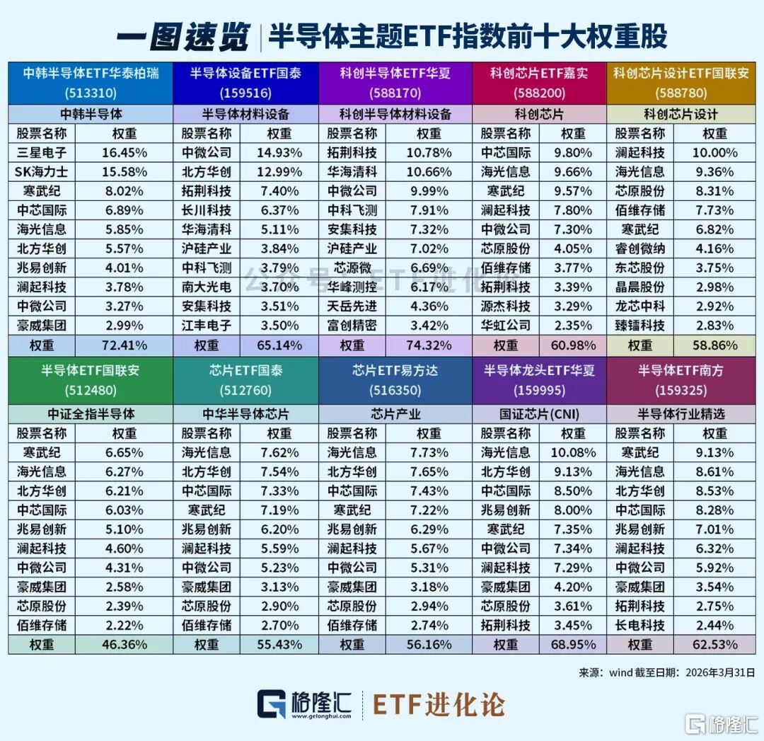 目前A股市场上半导体ETF的指数10只,一图速览: