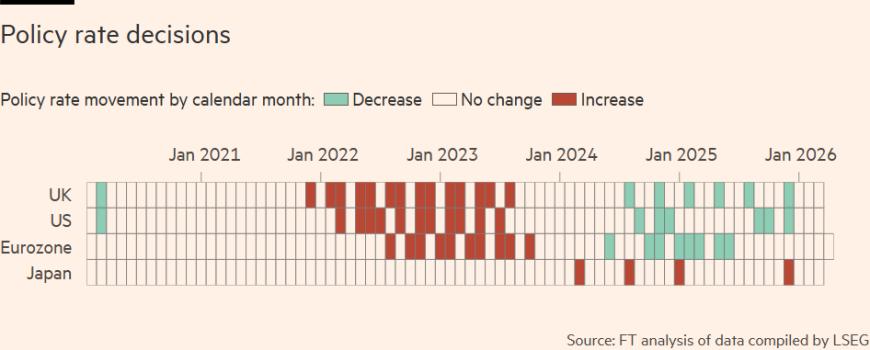 英国央行方面,尽管2026年3月曾暗示可能加息(当前利率为3.75%),但行长安德鲁·贝利(Andrew Bailey)已明确指出市场预期过于激进,交易员也随之明显降低加息押注。