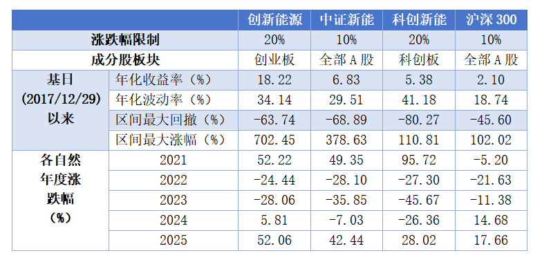 与市场其他新能源指数相比,创业板新能源指数的成分股或更具备“成长 创新”的双重属性。