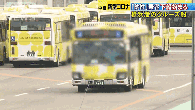 据厚生劳动省称,19日下船的443人中约410人是日本人,20日下船的274人中约一半是日本人。这些乘客下船后,被巴士送到附近的交通枢纽站,之后就能乘坐公共交通工具自行回家。