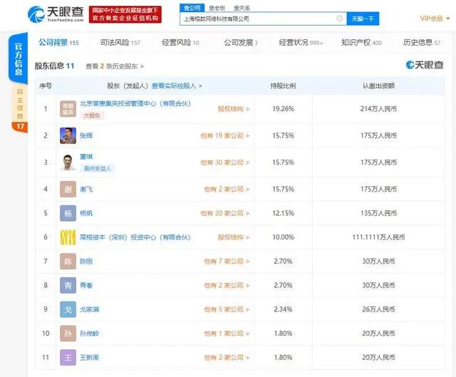 该公司为上海榕数网络科技有限公司的全资子公司,后者法定代表人同为董祺,且曾多次更名,曾用名包括凡普金科企业发展(上海)有限公司、普惠金融信息服务(上海)有限公司。此外,上海榕数网络科技有限公司的股东中,还包含了高榕资本等。