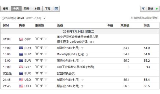 周二(7月24日),投资者需关注先后16:00、21:45公布的欧元区、美国7月Markit制造业PMI初值,18:00的英国7月CBI工业订单差值,21:00的美国5月FHFA房价指数月率以及周三凌晨04:30的美国截至7月20日当周API原油库存变动数据。