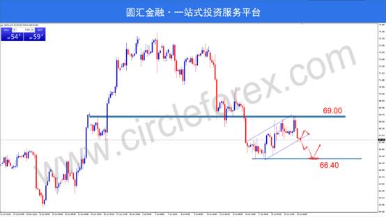 交易策略:建议考虑于关键阻力区间69.00附近做空,目标66.50附近,止损60点左右。