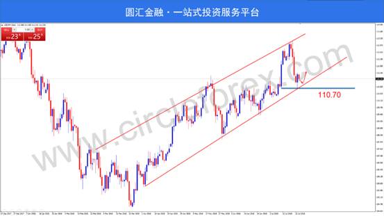 交易策略:考虑在关键支撑区间110.70附近做多,目标111.80附近,止损40点左右。
