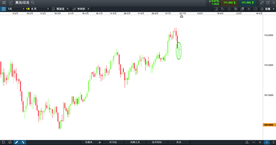 重要的一些潜在点位,首先,若其继续上行,则需要突破上周高位113.18,进一步上行的潜在位置在115关口。但若破位下行,则可能再次下探5月27日低点108关口。