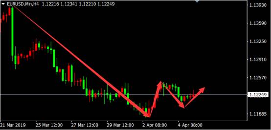 从欧元兑美元4小时图来看,价格连续下跌之后出现W底反转看涨K线形态,多头行情恐将再次启动。