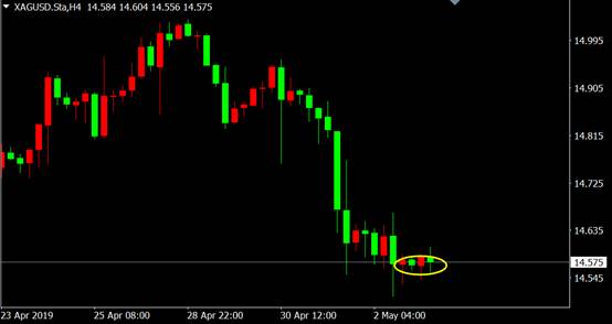 从白银4小时图来看,价格在短期下跌末期连续出现孕线看涨K线形态,短线反弹即将来临。