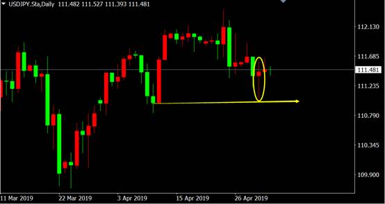 从美元兑日元日线图来看,价格回调到前期低点附近出现锤子线反转K线形态,反弹即将来临。