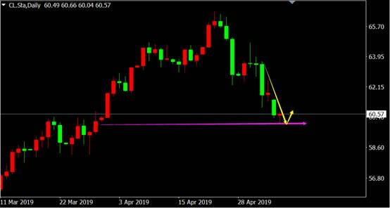 从WTI原油日线图来看,经过一波下跌,价格回调至前期上涨启动点附近,若是价格企稳将迎来反弹。