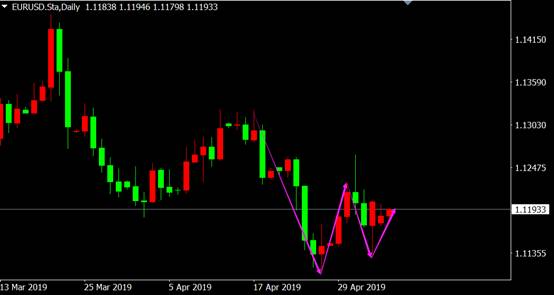 从欧元兑美元日线图来看,价格低位形成W底反转K线形态,反弹即将展开。