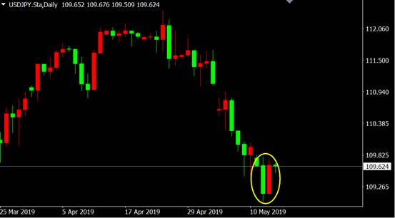 从美元兑日线图来看,价格下跌末期出现看涨吞没K线形态,行情即将展开反弹。