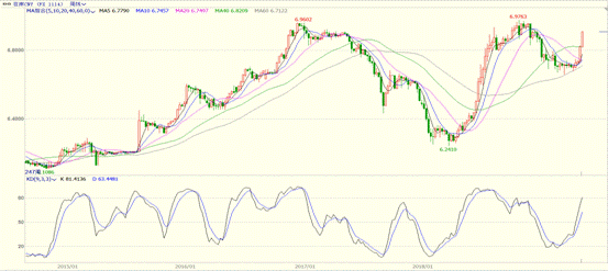 美元兑人民币周线图